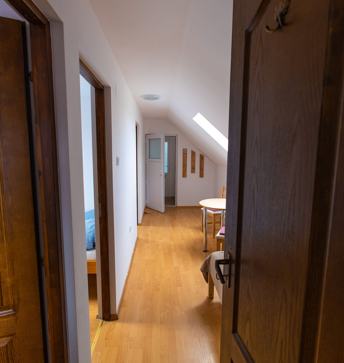 Az apartmanban 1 előtér, 1 felszerelt konyha, 2 hálószoba és 1 fürdőszoba található. Apartmanunkban 2 db. 2 személyes franciaágy és 1 db. 1 személyes ágy biztosítja a kényelmes pihenést vendégeink számára. Igény szerint 1 pótágy még betehető.